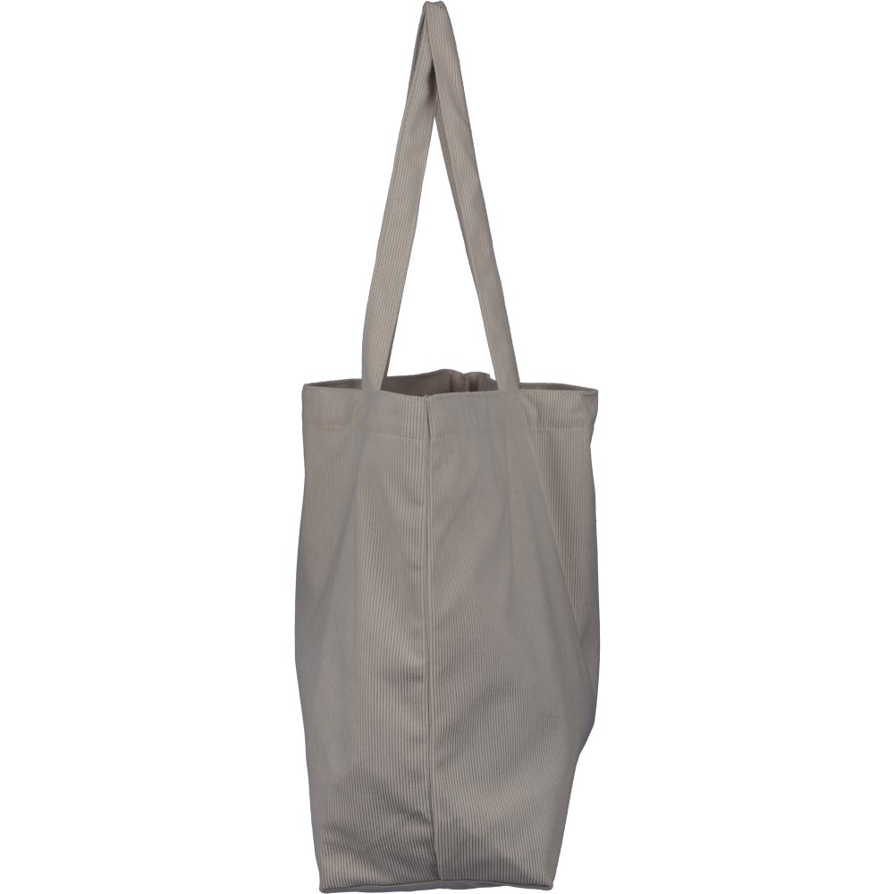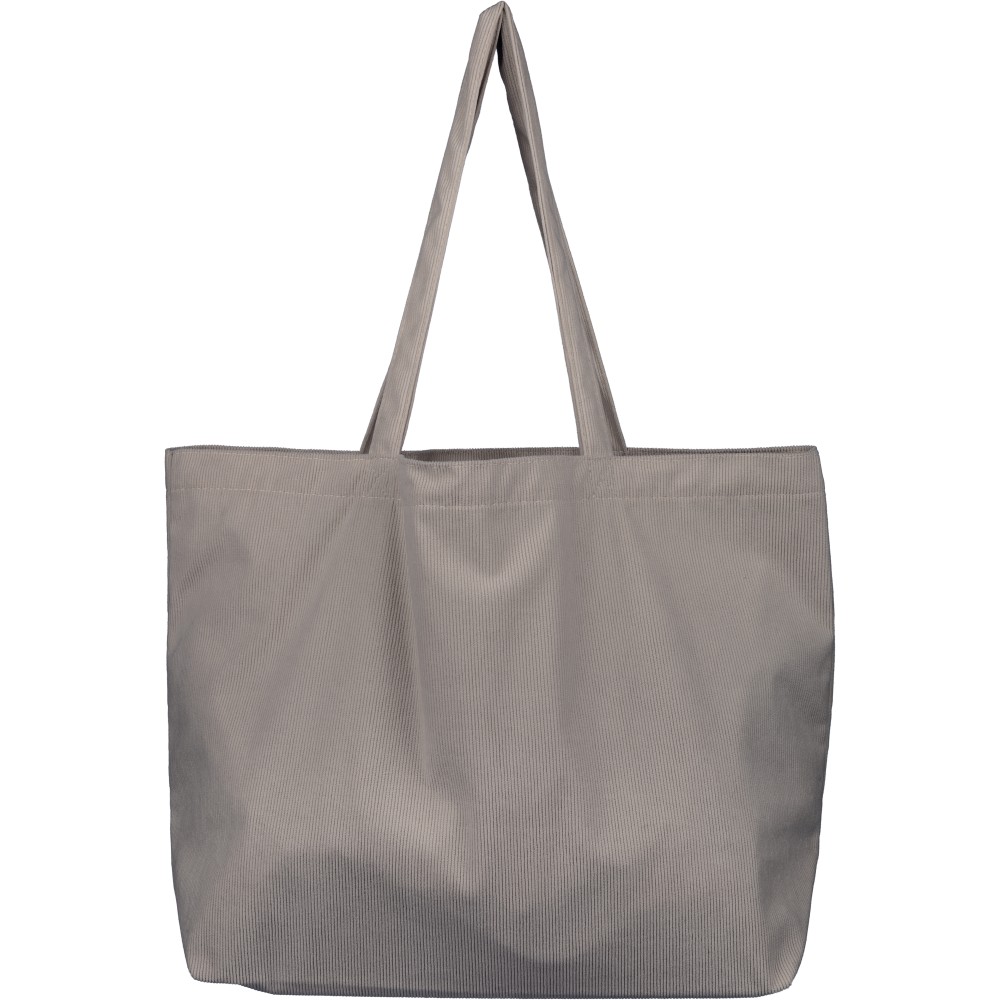 Kordbársony anyagból készült válltáska 2,5 × 60 cm hosszúságú fülekkel, 51 × 15 × 33 cm méretű tágas fő rekesszel és 10 × 10 cm méretű belső zsebbel. Mindennapi használatra alkalmas.