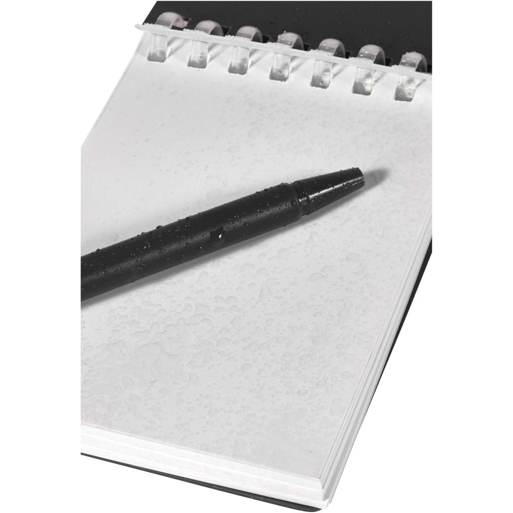 A Lig Mini jegyzetfüzet és toll szett kompakt és praktikus társ a gyors jegyzeteléshez útközben. A spirálfüzet puha, újrahasznosított műanyag borítással és 70 darab, 120 g/m2 súlyú, vízálló kőpapírból készült üres lappal rendelkezik, így ideális választás szabadtéri használatra is. A kerekített sarkokkal és beépített tolltartó pánttal ellátott kiegészítő tökéletesen követi a "mini" trendet, miközben teljesen funkcionális marad. A szetthez tartozó golyóstoll újrahasznosított ABS műanyagból készült, fekete tintával ír, íráshossza pedig 250 méter. A színben harmonizáló fémgyűrű segítségével a szett könnyen rögzíthető hátizsákra, táskára vagy kulcscsomóra, így tartós és hordozható megoldást nyújt a jegyzetek rögzítéséhez. A jegyzetfüzet mérete: 11 × 7,5 cm.