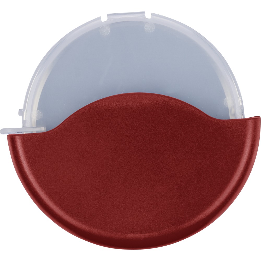 ABS és PP anyagból készült pizzavágó 430-as rozsdamentes acél pengével, kivehető védőborítással, amely könnyen felpattintható a tisztítás és a penge elérése érdekében. Újrahasznosított polietilén tasakba csomagolva.